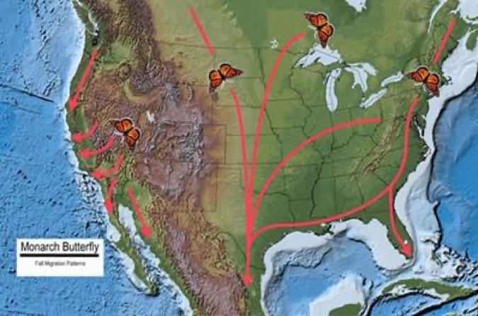 In the fall, the final generation of the Monarch Butterfly migrates each year to Mexico from the northern parts of the U.S. and Canada.